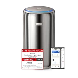 Philips PureProtect 3200 Serie: Intelligenter Luftreiniger, HEPA- und Aktivkohlefilter, CADR 500 m?/h fŸr 130 m?, besonders leise und energieeffizient, erfasst 99,97% Allergene (AC3210/12)